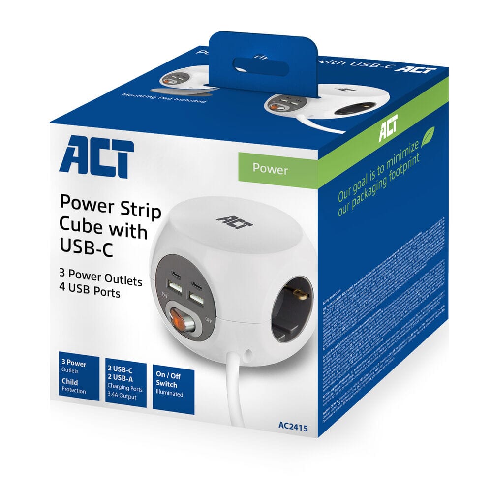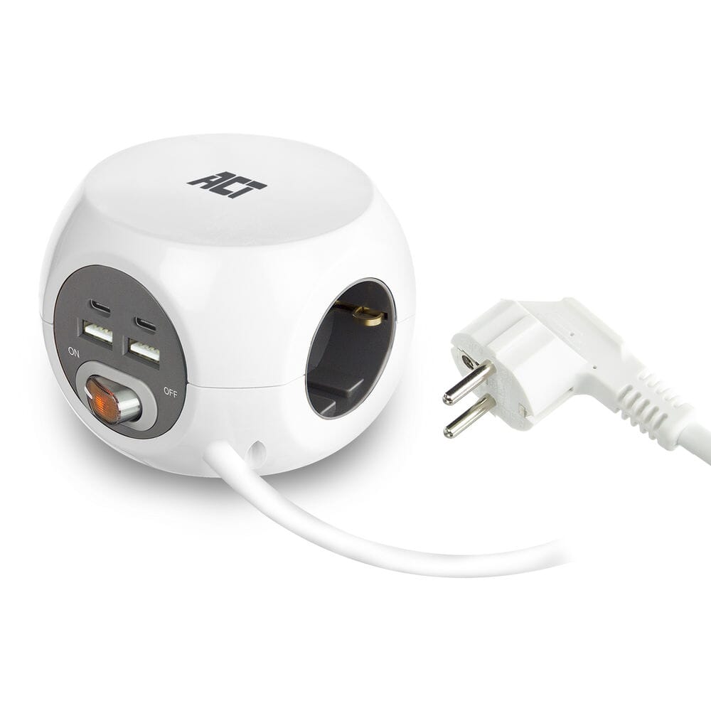ACT Stekkerdoos met USB-C/A-poorten, 3 sockets, 1,5m, wit