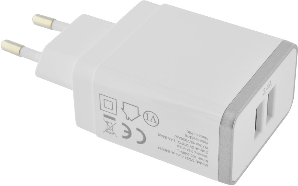 Krachtige 2.4A duo USB thuislader met Smart IC