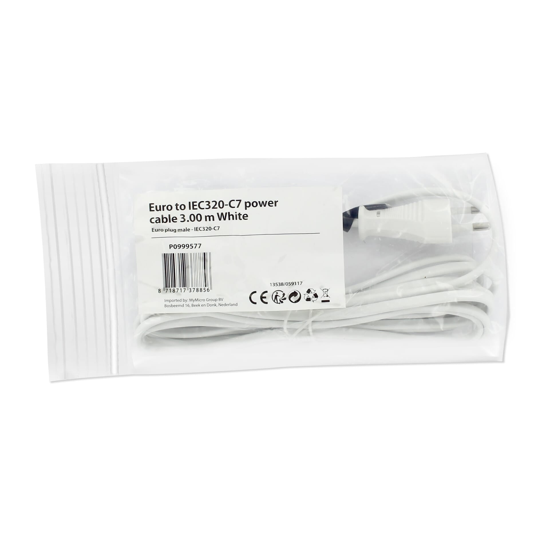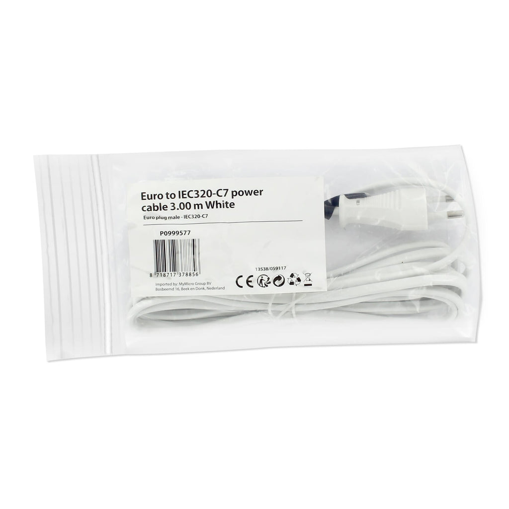 Euro naar IEC320-C7 Stroomkabel 3 Meter - Wit
